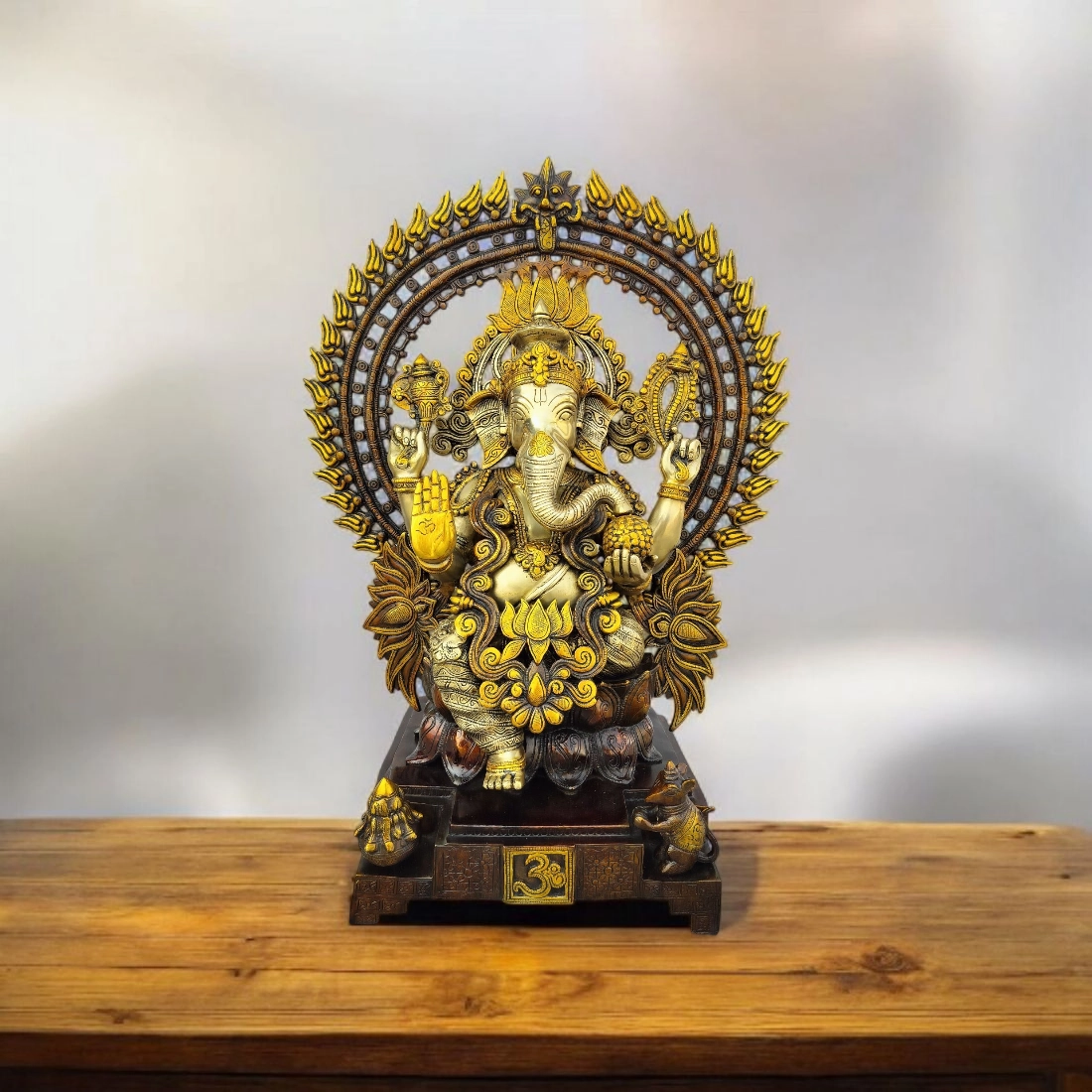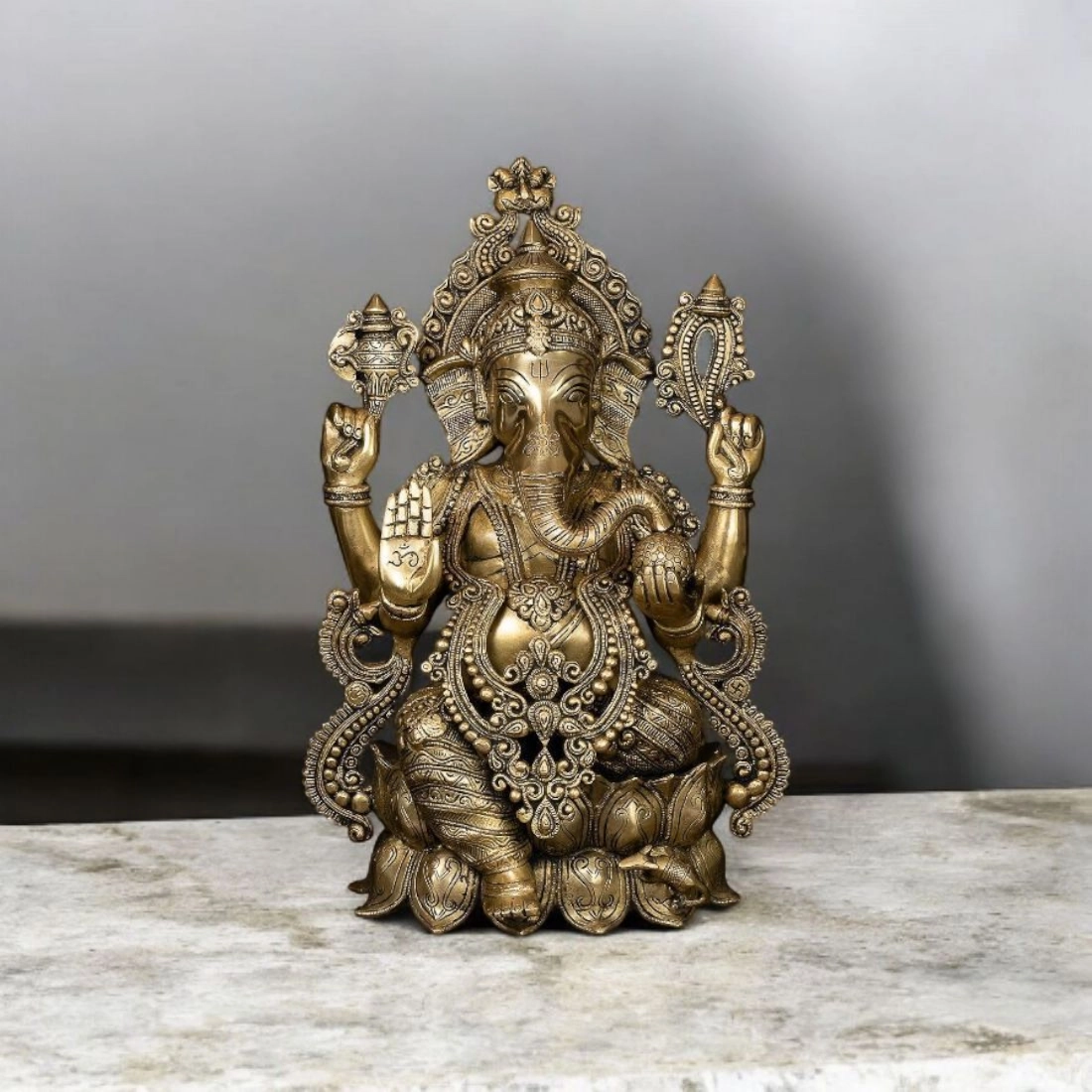 Brass Ganesha Brass Statue 17" INCH, Home Decor Gift, Indian Brass Art, Brass Ganesh, Brass Sculpture, Brass Figurine Large, Brass Ganesh Statue