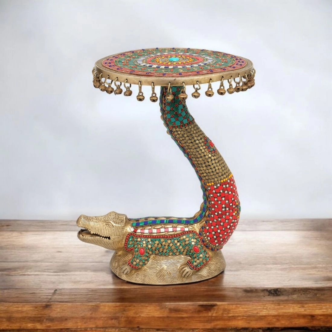 Elevate the sacredness and beauty of your spiritual space with the Big Chowki Table Stool Brass – 19 Inches by KESHTO CRAFT. This large, intricately crafted brass stool is a perfect blend of functionality, tradition, and elegance. Measuring 19 inches, this stool is not just a piece of furniture but an essential part of your worship rituals, designed to serve as a sacred base for idols, deities, and offerings during pooja ceremonies.